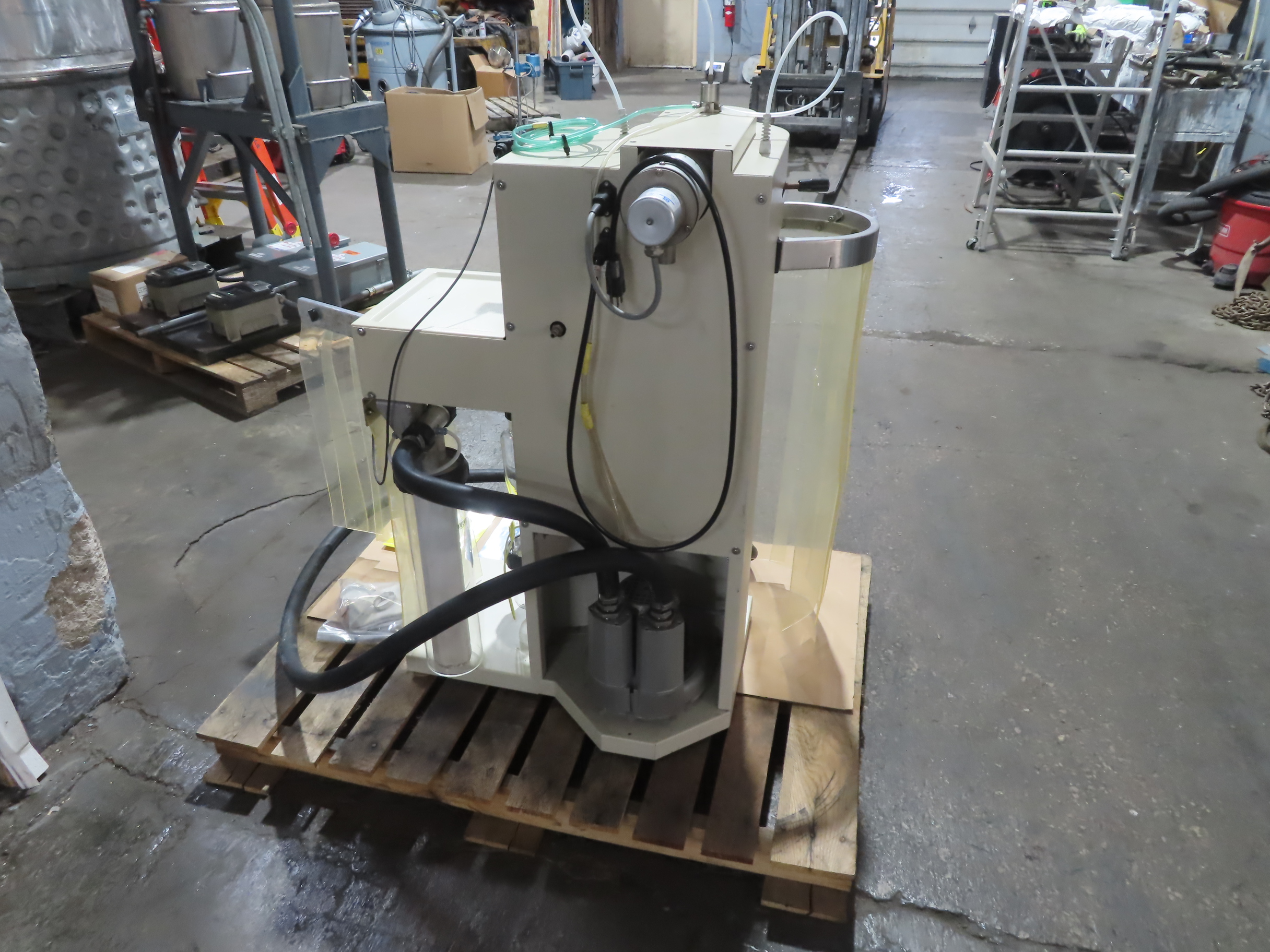 - » Glass product filter on back end with fabric sock (dust collector)